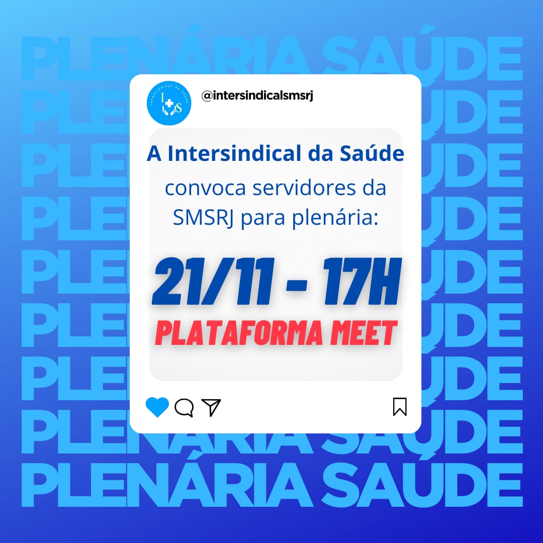 💣 A Intersindical da Saúde convoca os servidores municipais para a plenária da saúde para debater o pacote de maldades do Prefeito Eduardo Paes contra o funcionalismo público.